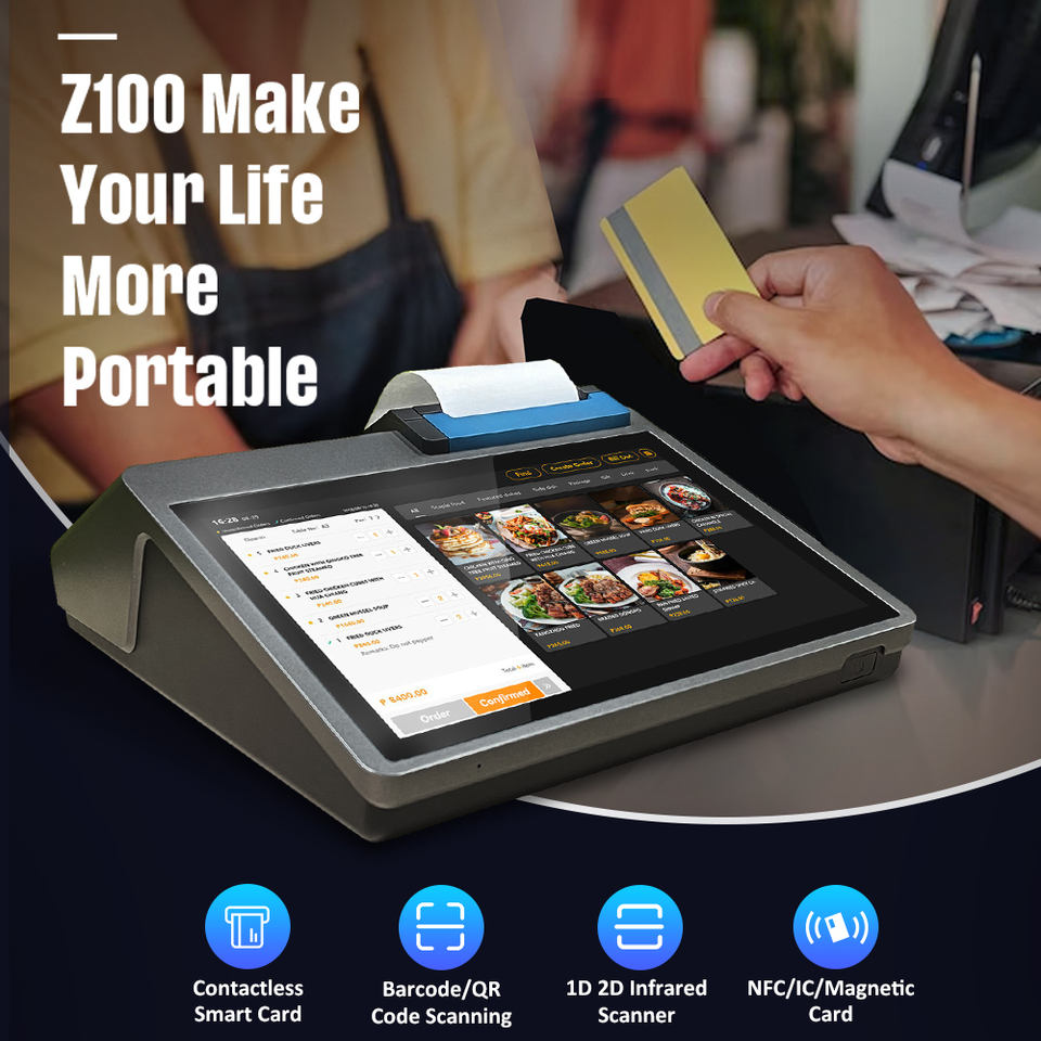 Z100 Android Desktop POS Machine with Barcode Scanner Thermal Printer 4G, Wi-Fi for Seamless Payment Solutions