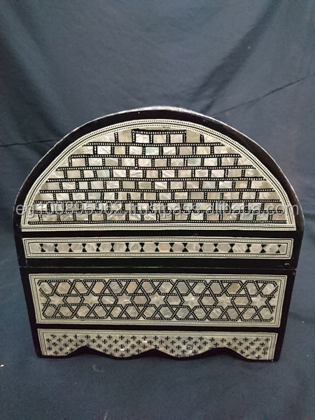 ZAHEREEN J54 HUGE Wood Mosaic Trinket Treasure Chest Holder Bombay Jewelry Box Egyptian