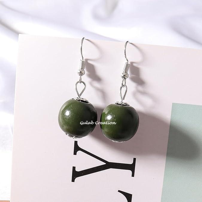 ZAM ZAM IMPEX 3-Layered Green Painted Wood Beads Choker Necklace Earring Modern Fashion Anniversary Gift Women New Christian