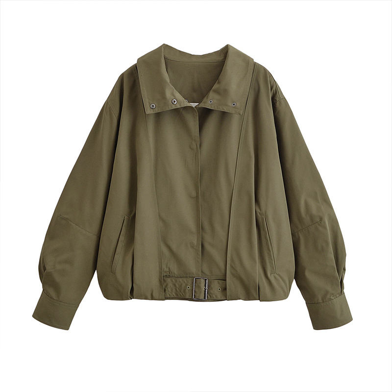 ZATRHMBM 2025 Summer Fashion Breathable Buckled Flight Jacket Coat Retro Casual Belt Style Long Sleeve Lapel Women's Outerwear