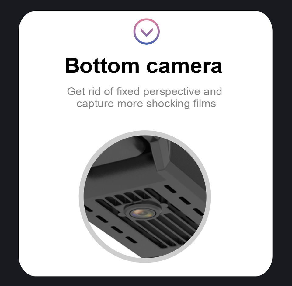 Headless mode, Altitude Hold Mode, Dual Camera, 3D flip, App Control, One Key Takeoff / Landing, Foldable, 3D View Mode, With LED Lights, With Camerafunction