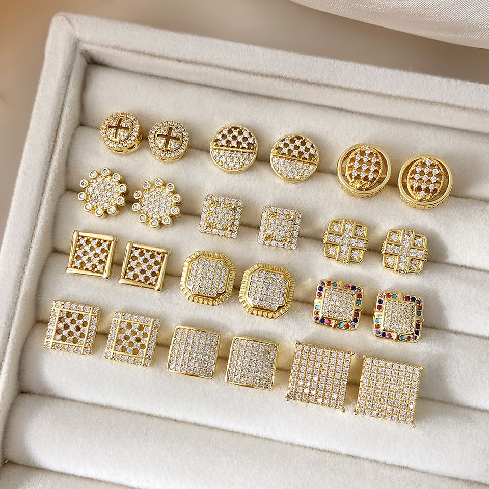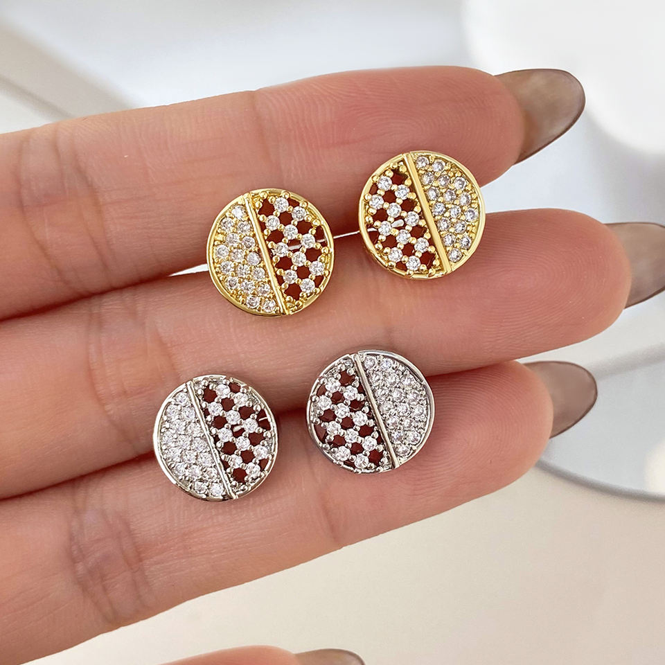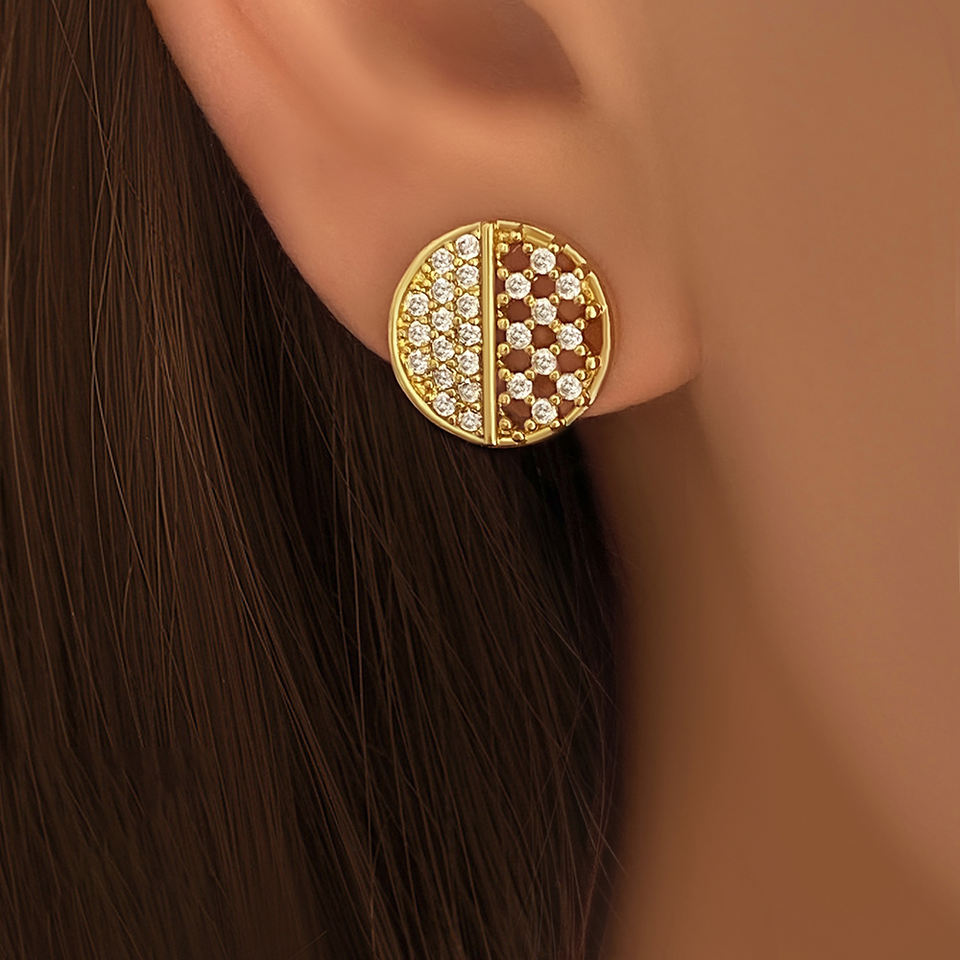 ZC Trendy Stud Earrings with Zircon for Women's Engagement Party Wedding Gift 18K Gold & Rhodium Plated Brass