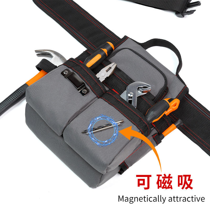ZC-YB-020 Magnetic Tool Waist Bag 10-14 Pockets Adjustable Strap Heavy Duty Oxford Cloth For Electrician Automotive Repair