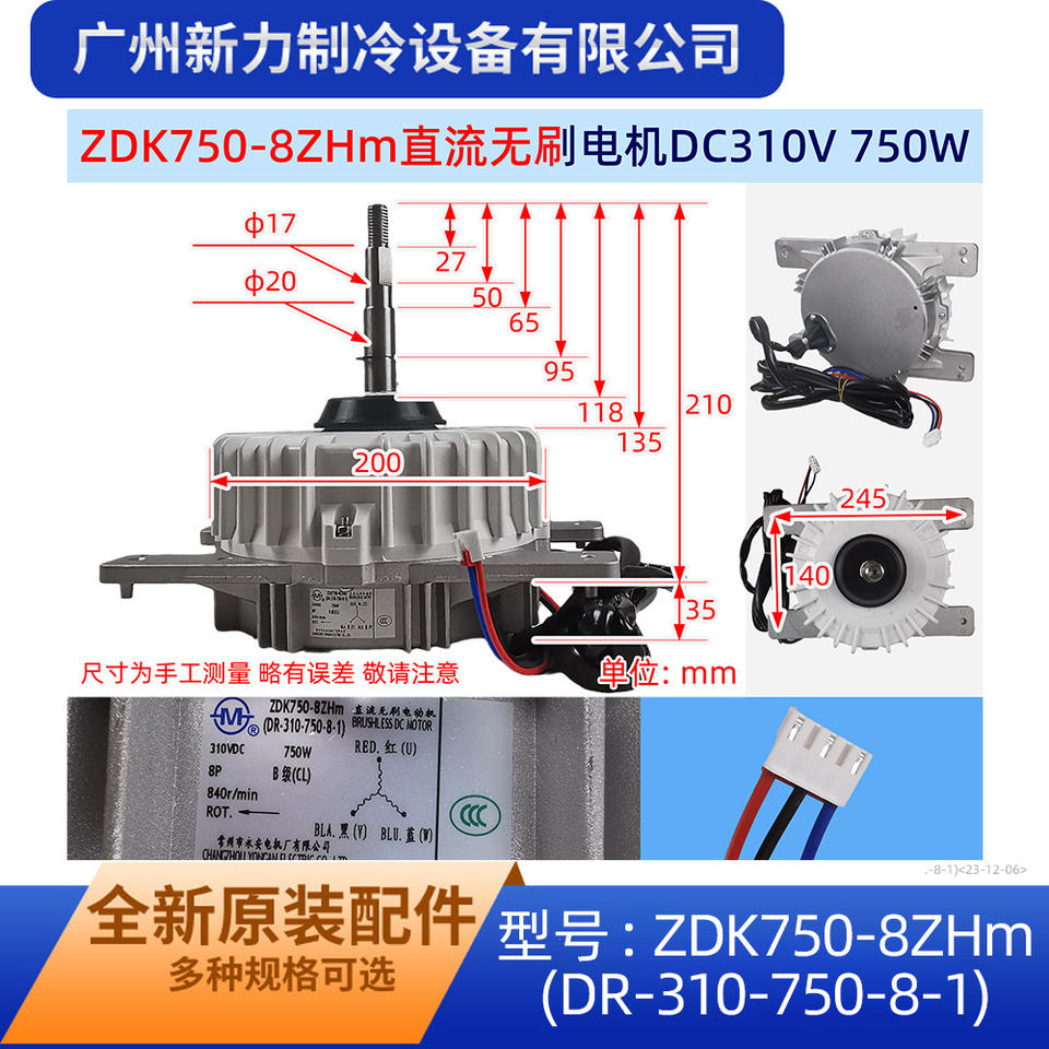 ZDK750-8ZHm Brushless Dc Motor Dr-310-750-8-1 For Central Air Conditioner Outdoor Fan Chassis Mount