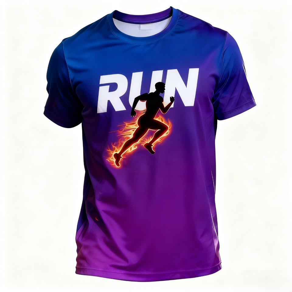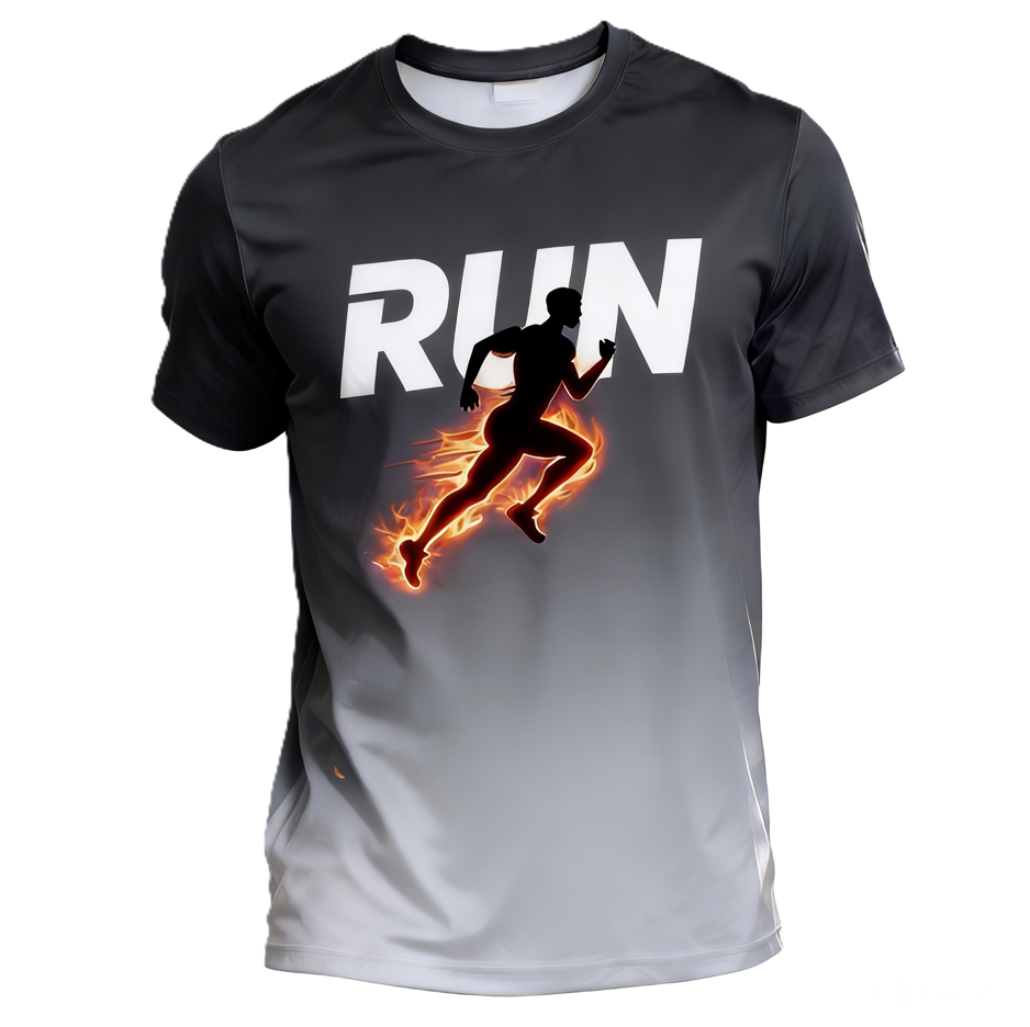 ZEDE Bulk Customization Factory Direct RUN Flame Printed Quick Dry Breathable Sports Short Sleeve Running T Shirt