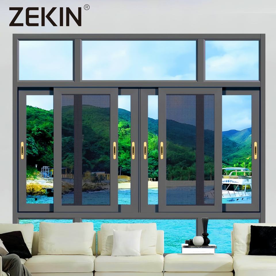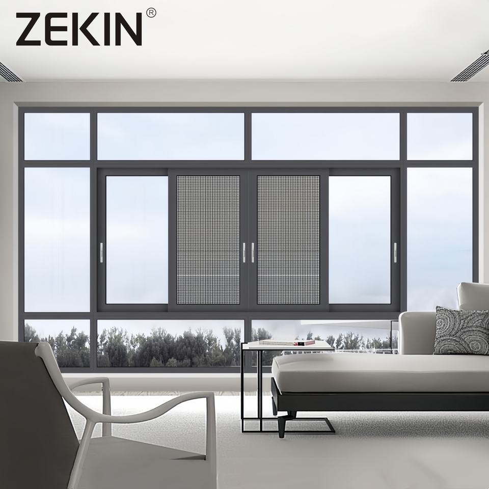 ZEKIN Energy Saving Aluminium Glass Sliding Windows Soundproof Double Glazed Insulated Easy Clean for House Use