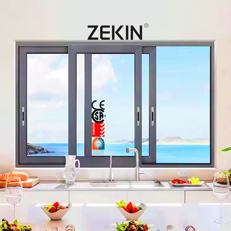 ZEKIN Sliding Windows Low U-Value Rust Proof Durable Construction Aluminum Frame with Laminated Glass Window Commercial Building