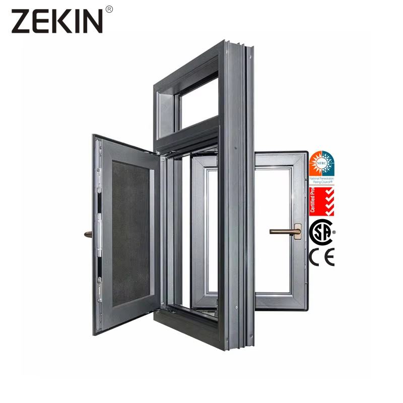 ZEKIN Toughened Glass Modern Casement Windows Urban Residence Powder Coated Aluminum Alloy Frame Stainless Steel Burglar Louver