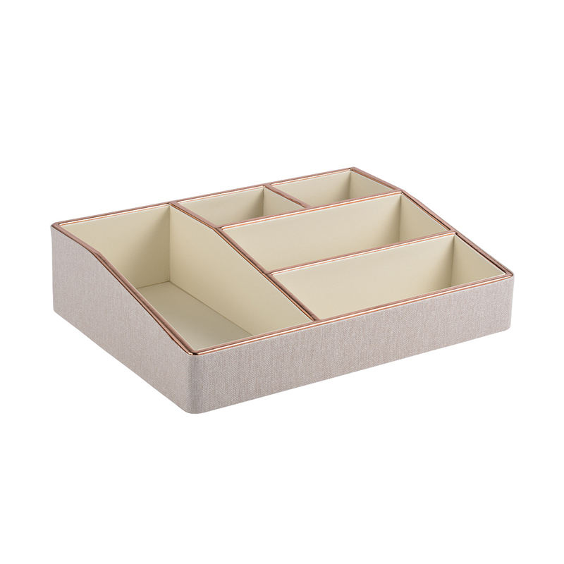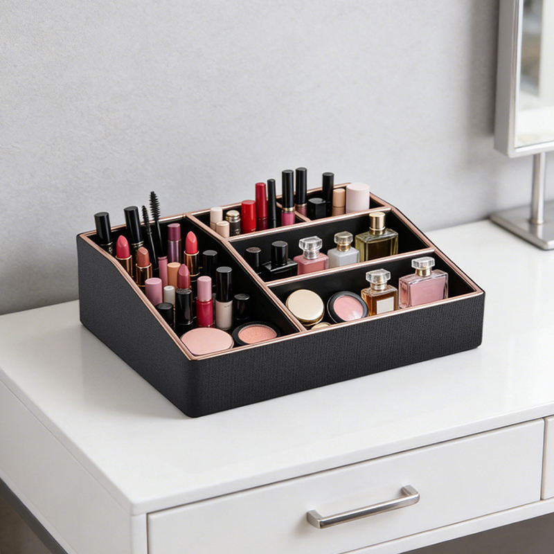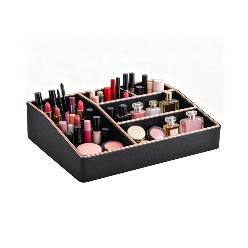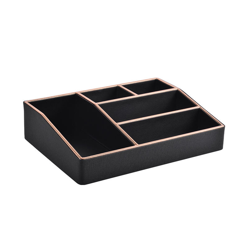 ZENOS Classic Leather Multi-functional Storage Box Single-Tier Desktop Bathroom Tray for Cosmetics Small Item Storage Reusable