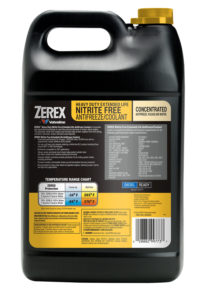 ZEREX Heavy Duty 1 Gallon Yellow Nitrite-Free Antifreeze Coolant Concentrate 3.78L Extended Life Product