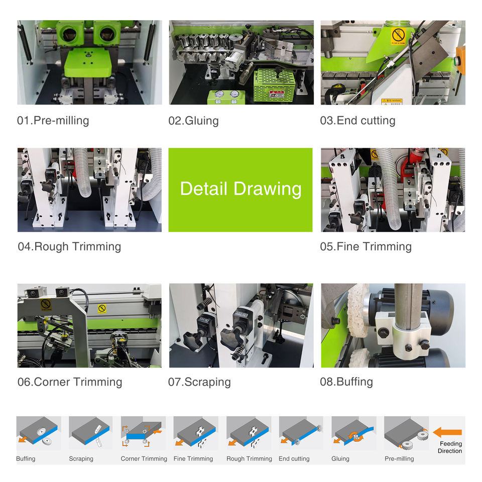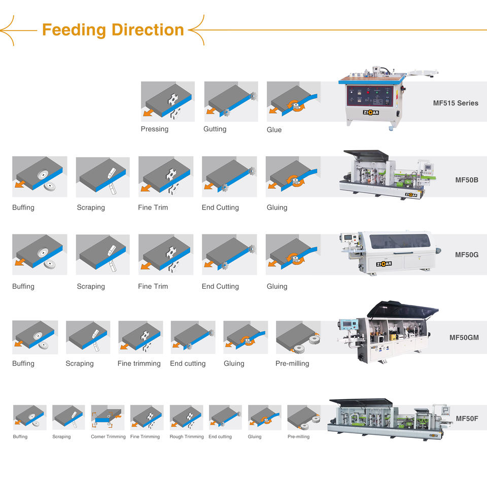 ZICAR melamine pvc plywood panel furniture edge banding machine pre milling with trimmer maquinas de banda de borde