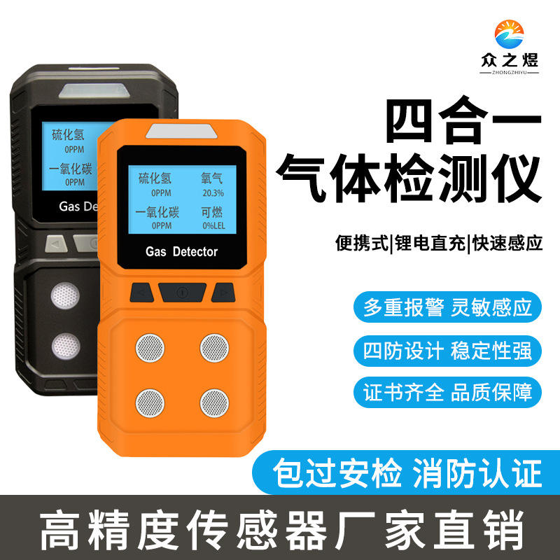 ZJ-840 Portable Gas Detector O2 CO H2S LEL Flammable Gas Analyzer With Rechargeable Battery And Auto Storage Function