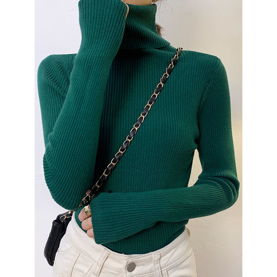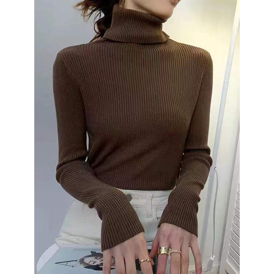 ZOKI New 2023 Women Pullover Turtleneck Sweater Autumn Long Sleeve Slim Elastic Korean Simple Basic Cheap Jumper Solid Color Top