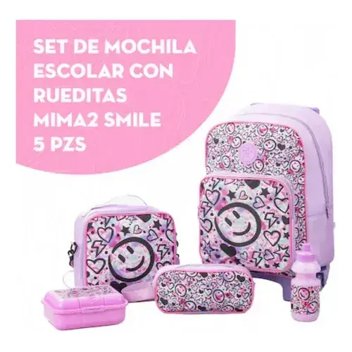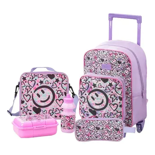 ZOMILUX Girls School Set Backpack with Wheels and Suitcase Lunchbox for Tupperware Pencil Bottle Included