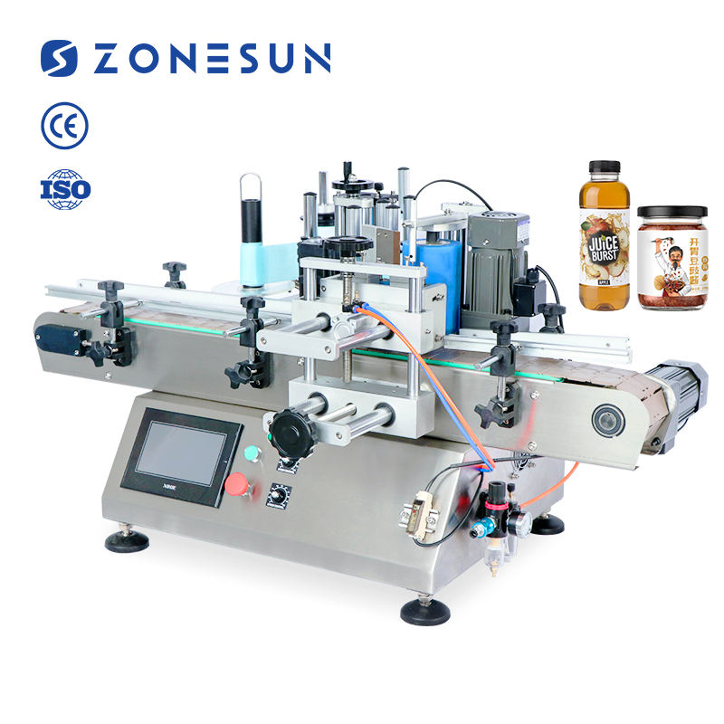 ZONESUN Automatic Essential Oil Plastic Bottle Label Sticker Tabletop Double Side Round Bottle Labeling Machine With Date Coder