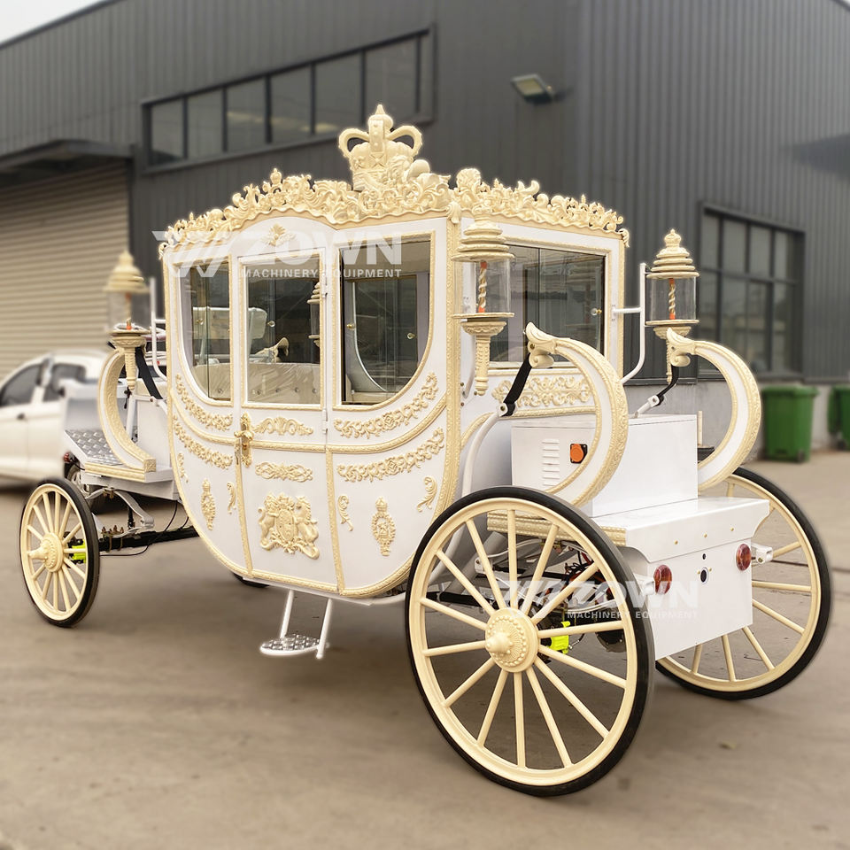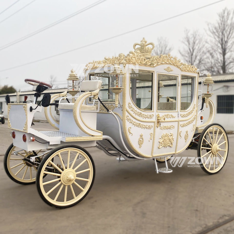 ZOWN OEM Luxury Royal Horse Carriage Trailer Wedding Electric 4 Wheels Double-row Horse Drawn Carriage Wagon 4-6 People 2 Year