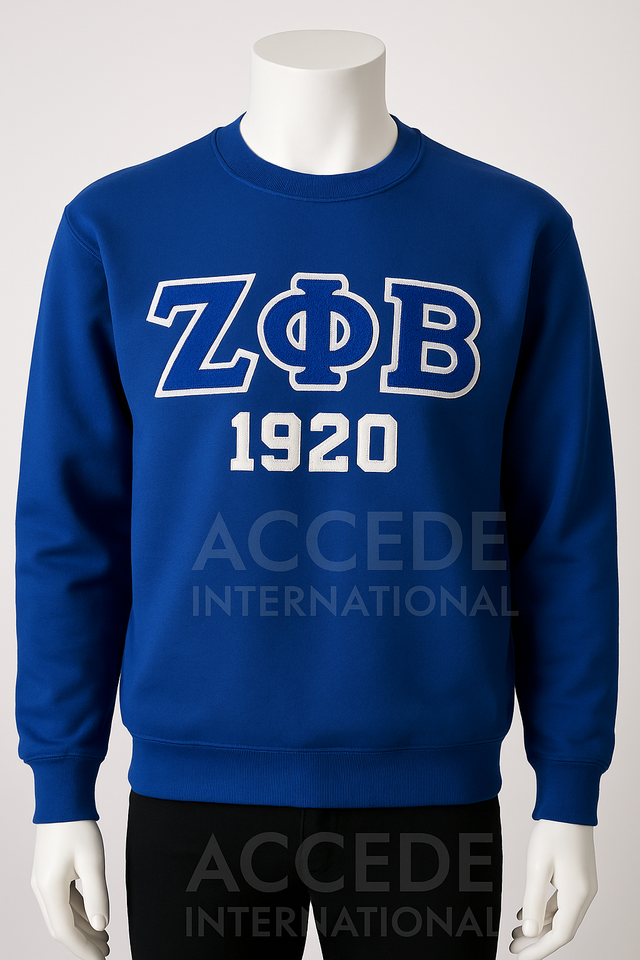 ZPB 100%Cotton Royal Blue Crew Neck Chenille Embroidered Logo Zeta Phi Beta 1920 Sorority Fraternity Sweatshirts Custom Hoodie