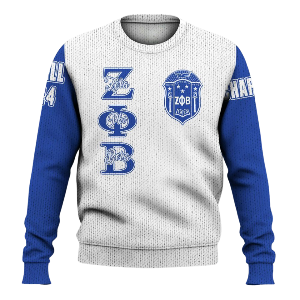ZPhiB 1920 Sorority Knit Sweater Zeta Phi Beta Greek Life Blue White Chenille Patch Letter Sweater Divine Nine Apparel