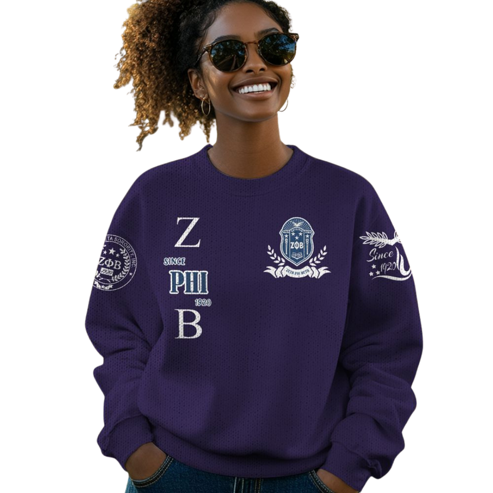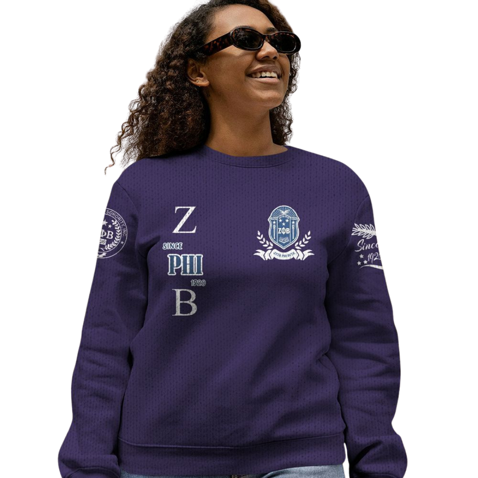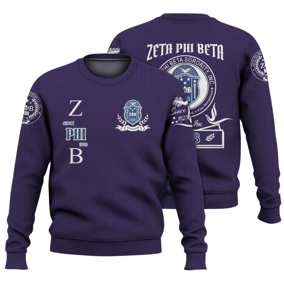 ZPhiB Knit Sorority Sweater Zeta Phi Beta 1920 Blue White Greek Life Chenille Letters Divine Nine Premium Apparel