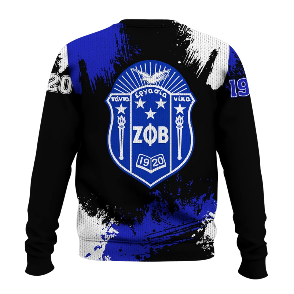 ZPhiB Sorority Knit 1920 Sweater Zeta Phi Beta Greek Life Blue White Chenille Patch Divine Nine Premium Sisterhood