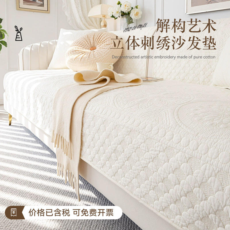 ZSYYZSFD Washed Cotton Sofa Cushion Cream Medallion Pattern Rectangle Pad Type Pure Cotton Home Use Chair Mats
