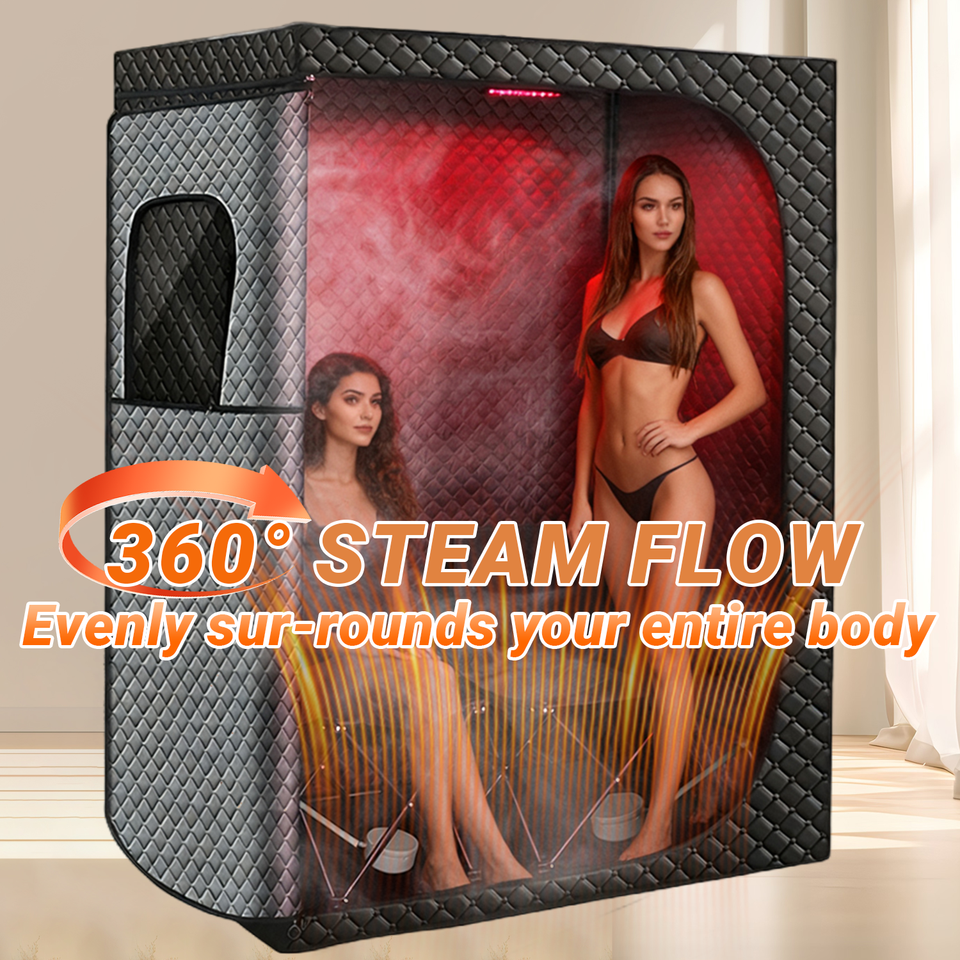 ZT Folding 2 Person Infrared Sauna Room Indoor Relax Steam Portable Sauna Box for Home Full Body Black Foldable Design