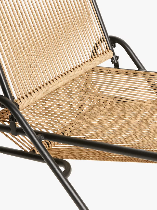 Zahara Simple Patio Lounge Chair Made of Aluminum Frame and Woven Rope with Natural Finish for Indoor and Outdoor Use.