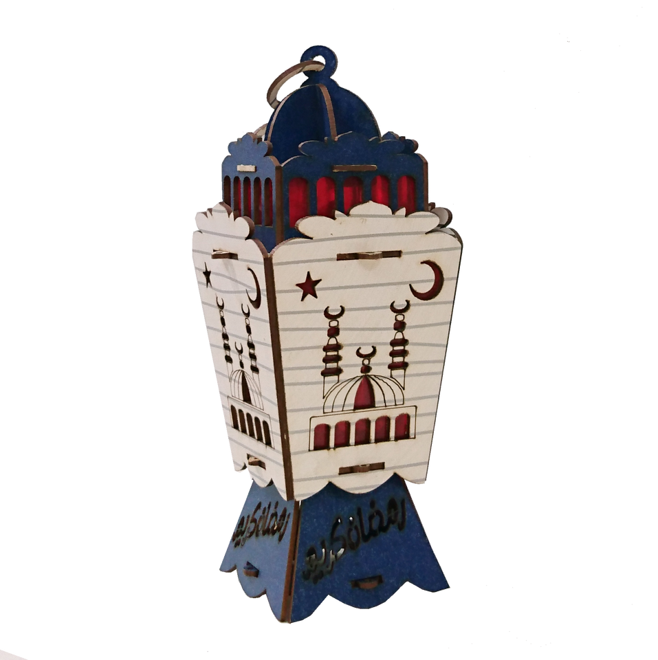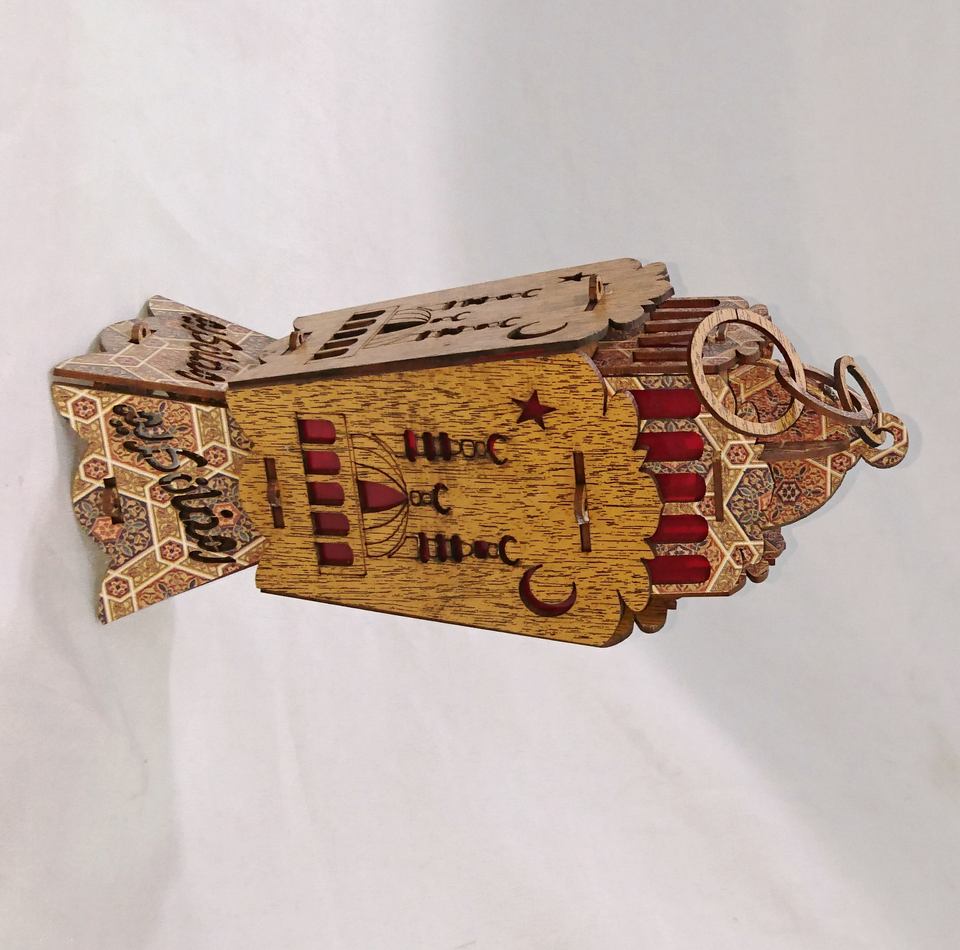 Zahereen AA121 Handmade Egyptian Kids LED Lantern Flashing Lights Ramadan Religious Activities Decorative Square Laser-Cut Wood