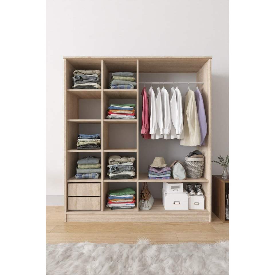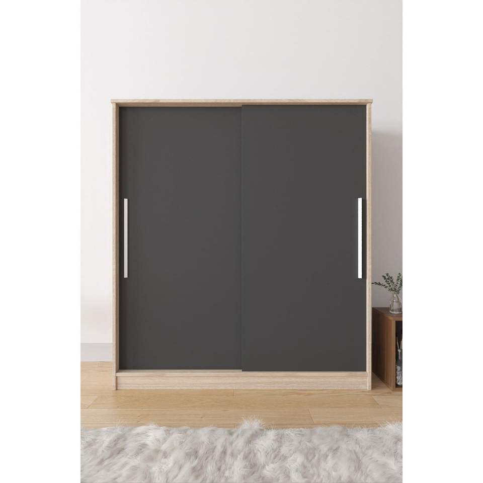 AekaOnline 160cm Dark Gray Modern Sliding Door Wardrobe Convertible Closet 11 Shelves 2 Drawers Workshop Clean Design Turkey