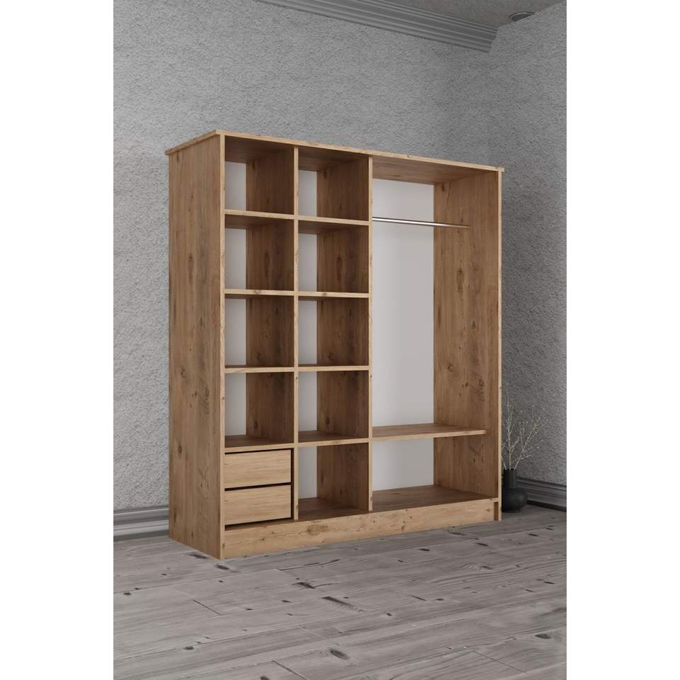 Zambak Modern Freestanding Pine Wardrobe 11 Shelves & 2 Convertible Drawers for Home & Workshop in Narrow Spaces