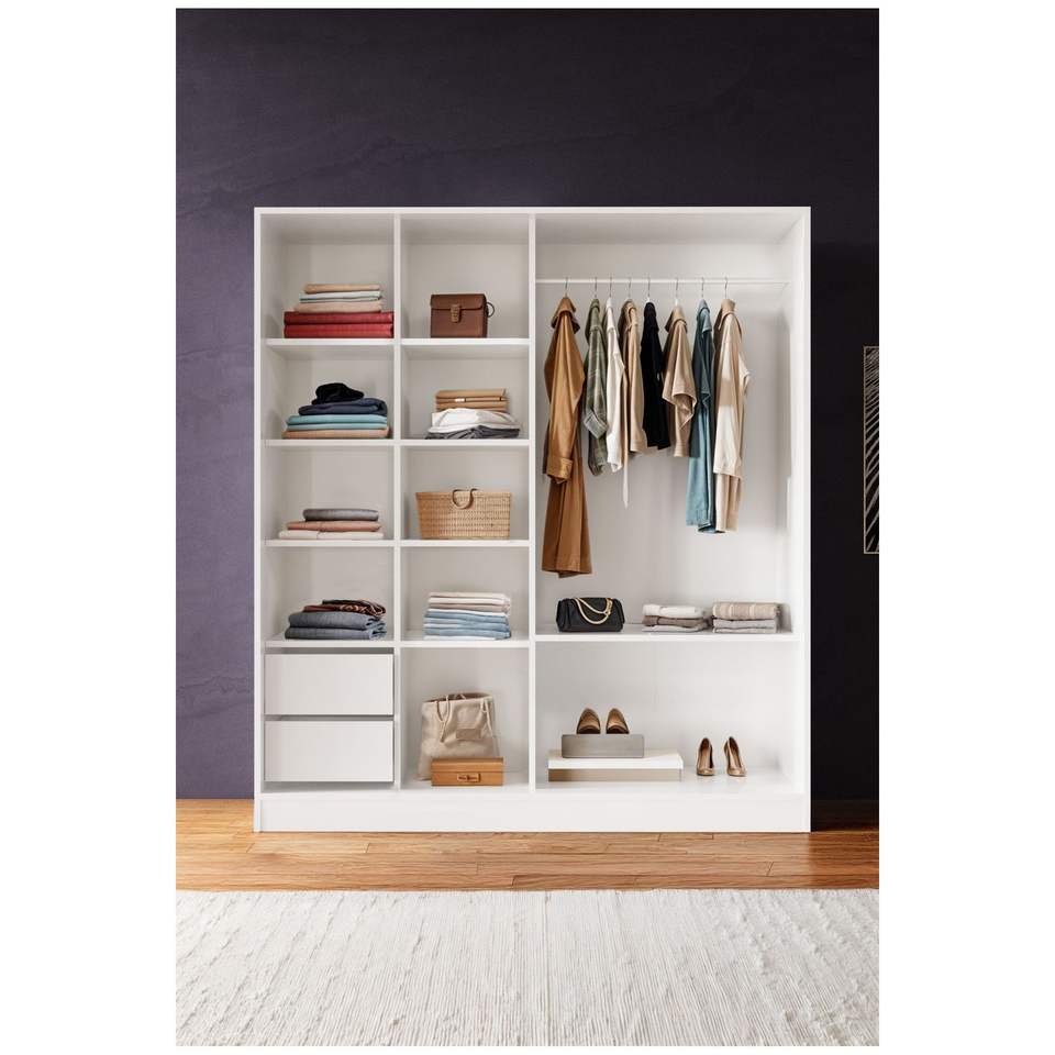 Zambak Sonoma-White Wooden Freestanding Wardrobe with Drawers Modern Bedroom Storage Cabinet Sliding Door and Folding Feature
