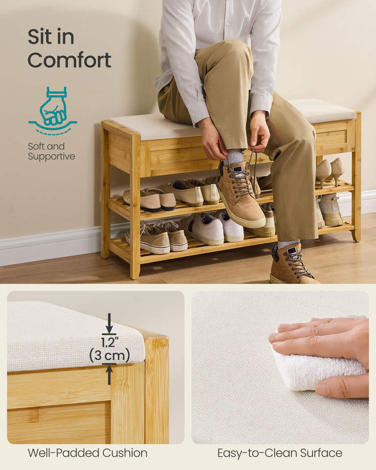 Zapateras De Madera 3 Tier Bamboo Shoe Storage Bench With Seat Multifunctional Shoe Rack For Entryway