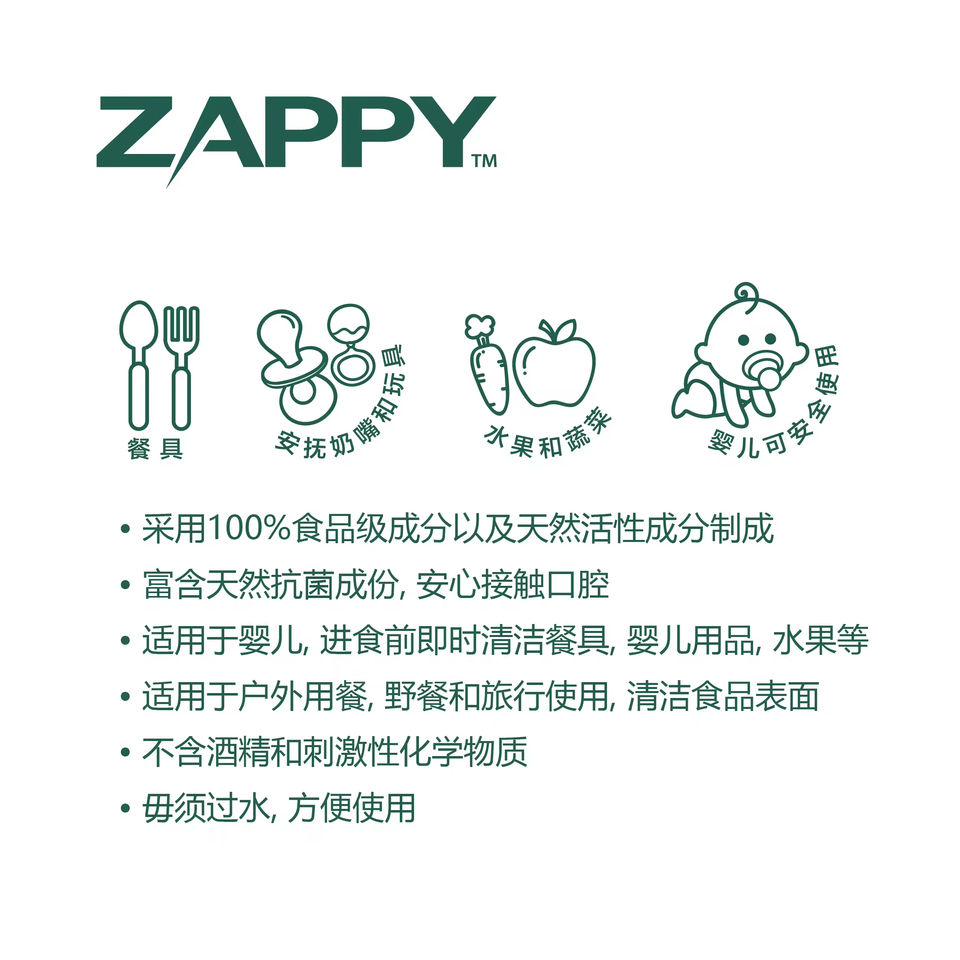 Zappy Eco-Friendly Biodegradable Alcohol Free Antibacterial 50 Pack Wet Wipes Safe for Food Contact Use