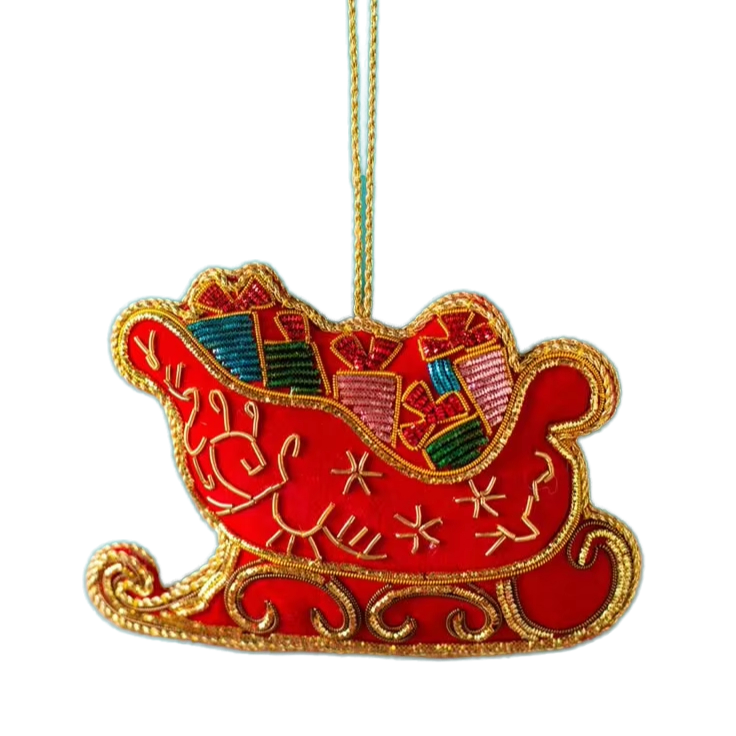Zari Embroidered Christmas Decor Traditional Festive Ornaments for Home Decoration Yuletide Charms Modern Gold Thread