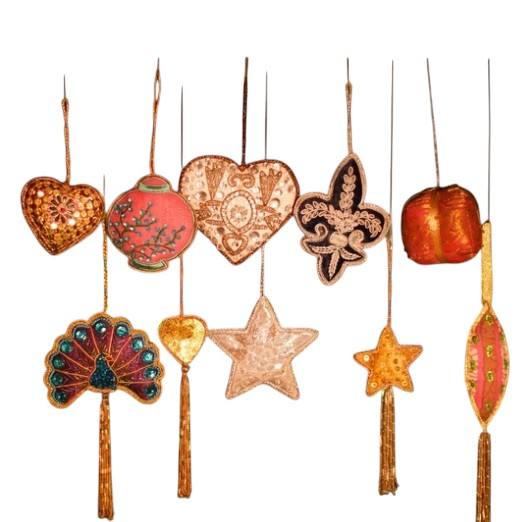 Zari Hanging Ornament | Beaded & Zardozi Embroidered Star, Heart & Floral Motifs | Ramadan, Eid & Christmas | Wholesale Export