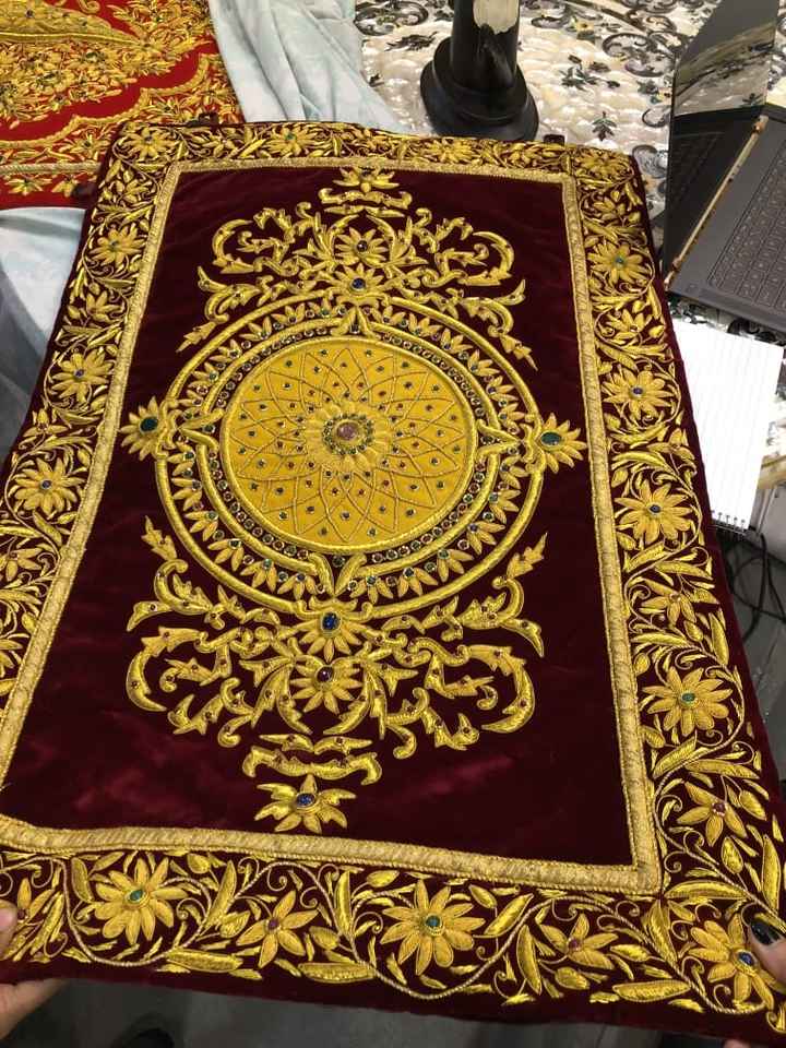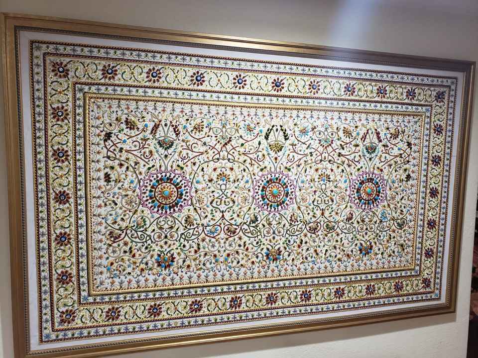Zari Jewel Carpet with Zardozsi wall hanging Zari Embroidery Traditional Artisanal Wall Hanging Machine Made