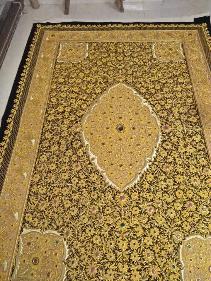 Zardozi Zari Embroidery Jewel Carpet Handmade