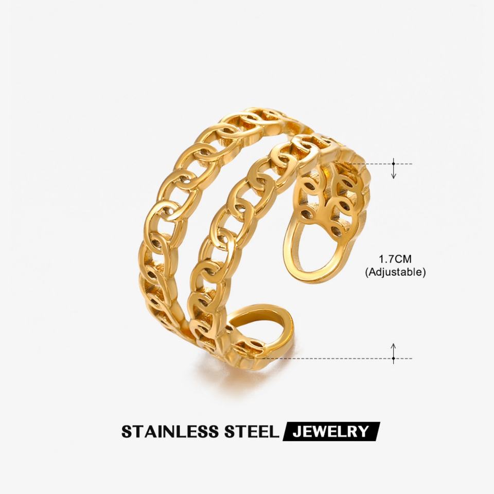 Zeadear Classic Stainless Steel Women's 18K Gold Plated Zircon Geometric Twisted Wide Band Adjustable Link Chain Rings
