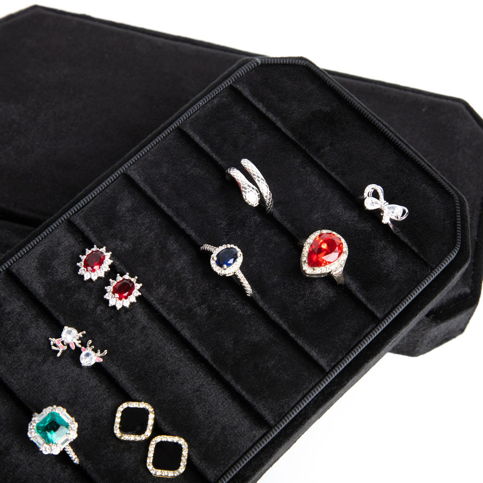 Zebo Custom Flannel Velvet Octagon Ring Earrings Display Boxes Organizer Container Jewelry Display Tray with Lid AC14