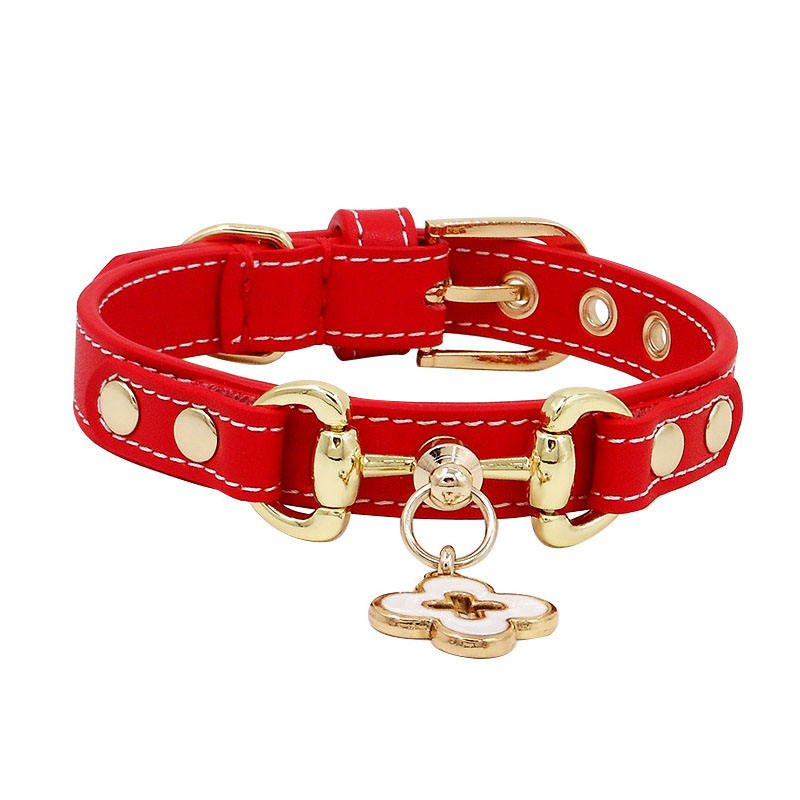 Zenos Elegant Cow Leather Soft Durable Pet Collar for Small Dogs and Cats