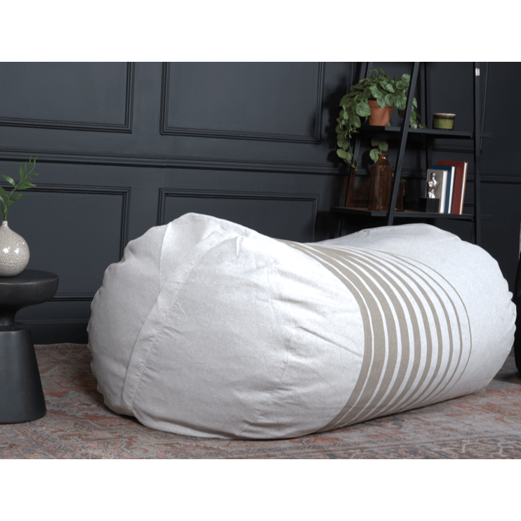 Zeon 6.5 Foot Bean Bag Sofa Natural Color with Light Brown Stripes Striped Cylindrical Bean Bag