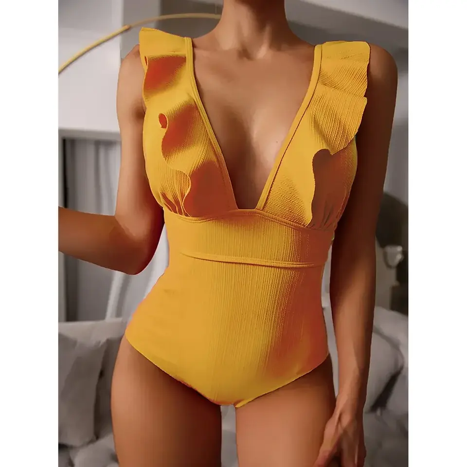 ZerZerOne Sexy Brazilian One Piece Swimwear Ruffles Cutouts Glitter Geometric Design Reversible Breathable Plus Size XL