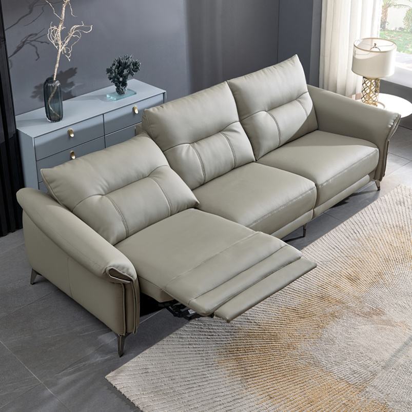 Zero Wall Electric Recliner Leather Sectional Sofa with Convertible Feature for Park & Living Room Use Modern Metal Frame