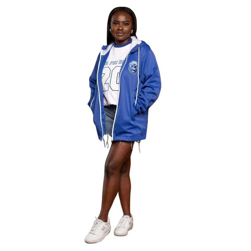 Zeta All Weather Windbreaker Jacket with Hood and ZPB Logo for Sorority Events and Outdoor Apparel