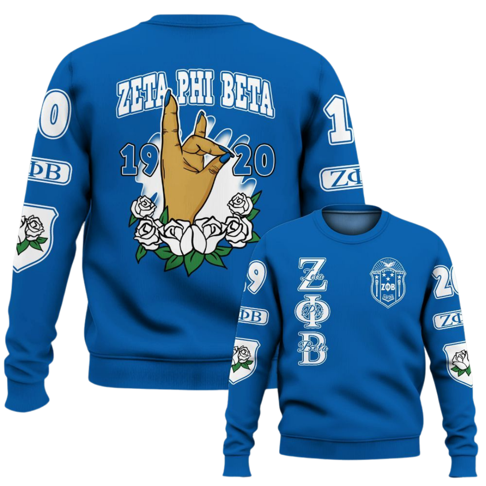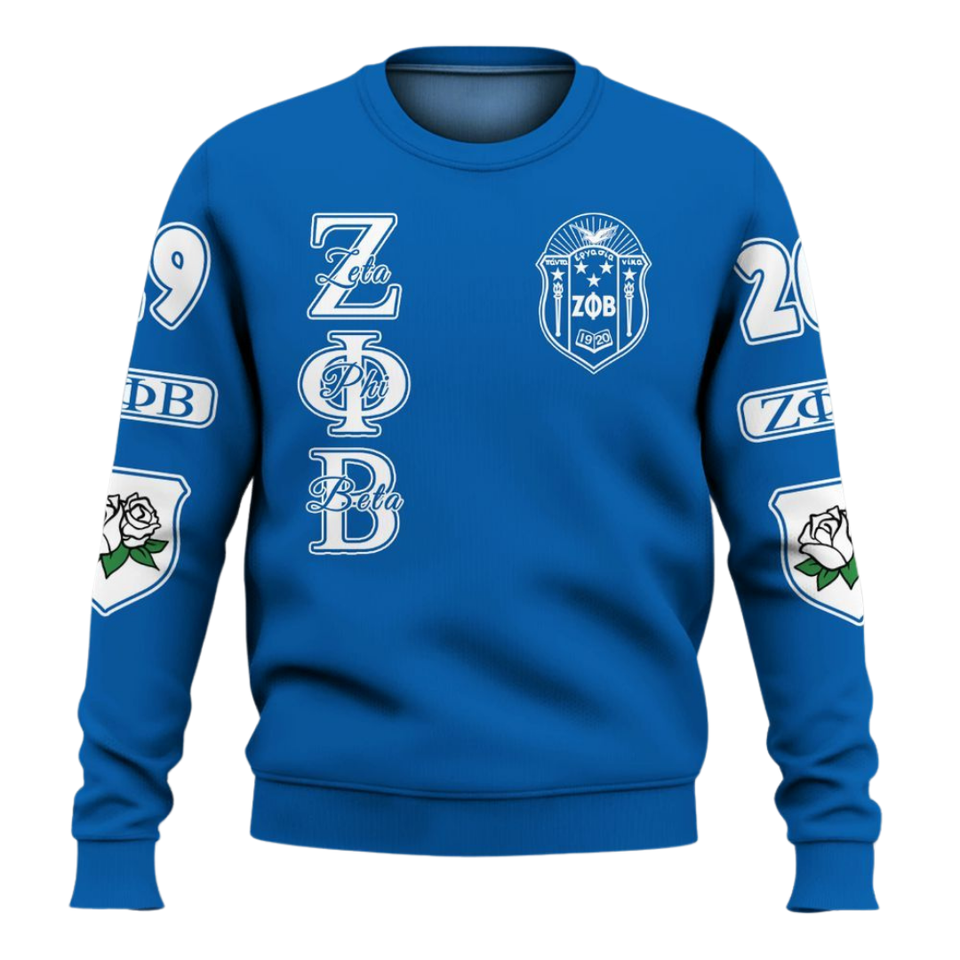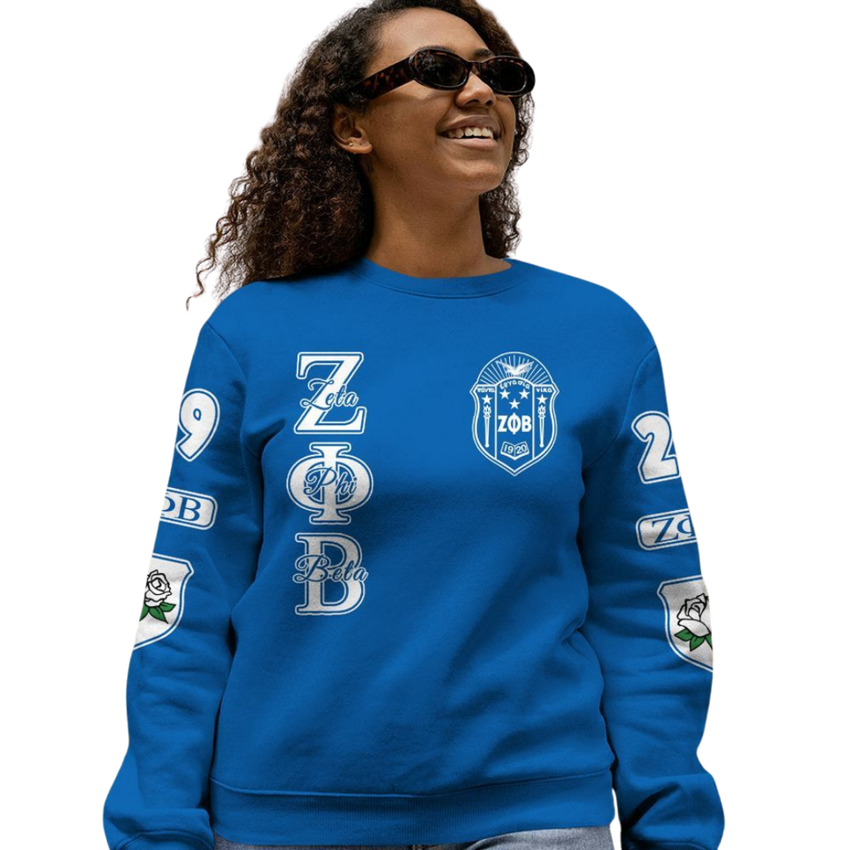Zeta Phi Beta 1920 Blue Crewneck Sweatshirt Women Sorority Greek Apparel Pullover Embroidered