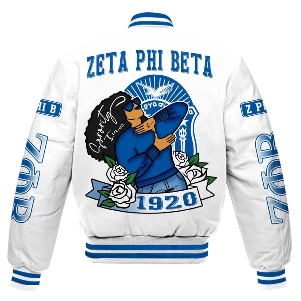 Zeta Phi Beta 1920 Founders ZPB Blue White Varsity Letterman Jacket Sorority Greek Life Chenille Patch Apparel