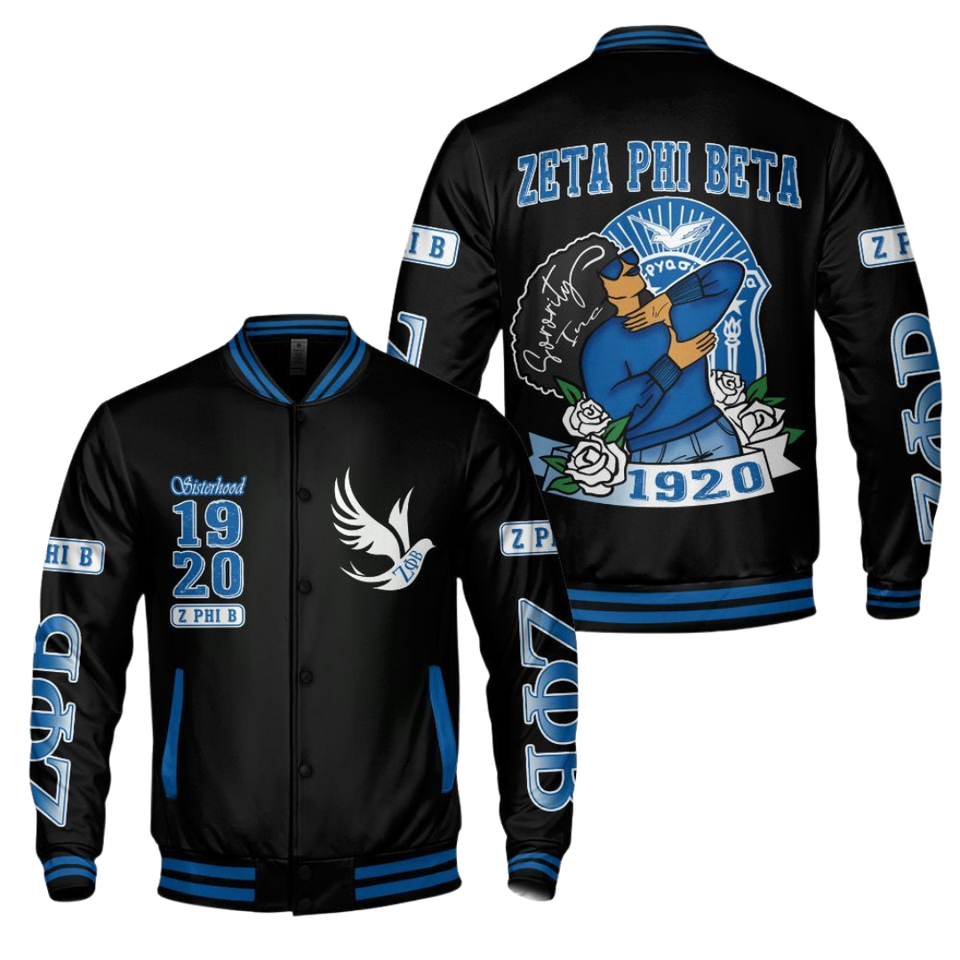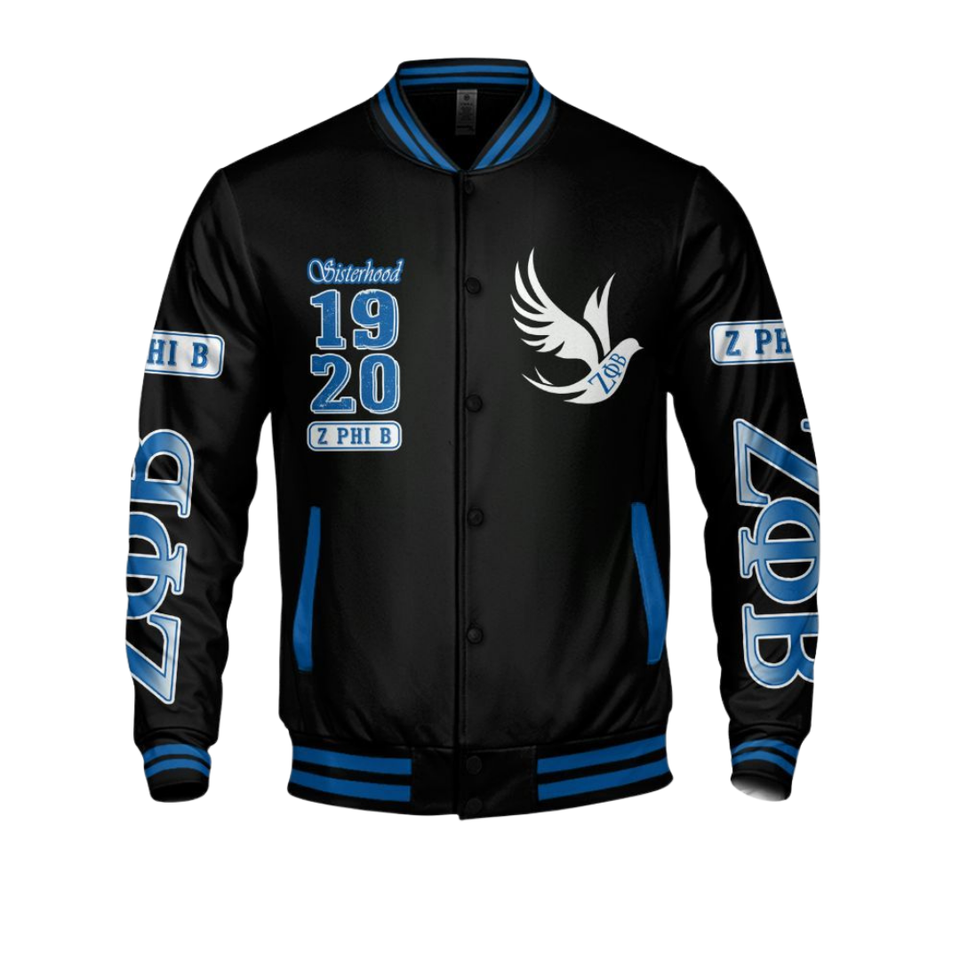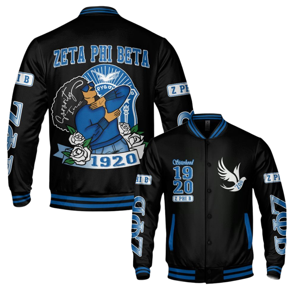 Zeta Phi Beta 1920 Greek Life Founders Blue White Varsity Letterman Jacket Sorority ZPB Chenille Patch Apparel