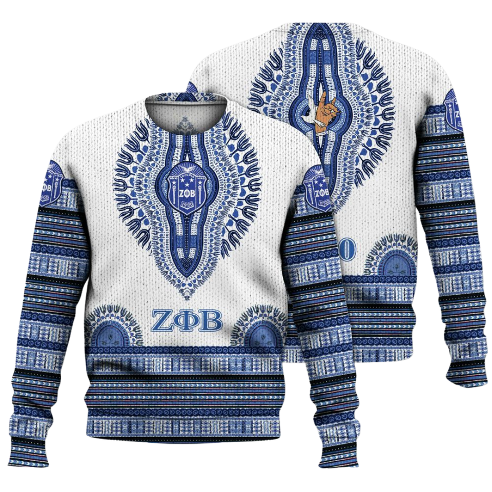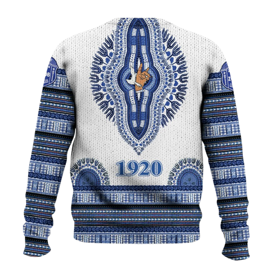 Zeta Phi Beta 1920 Knit Blue White Sweater ZPhiB Sorority Greek Life Chenille Letters Divine Nine Premium Top Wear
