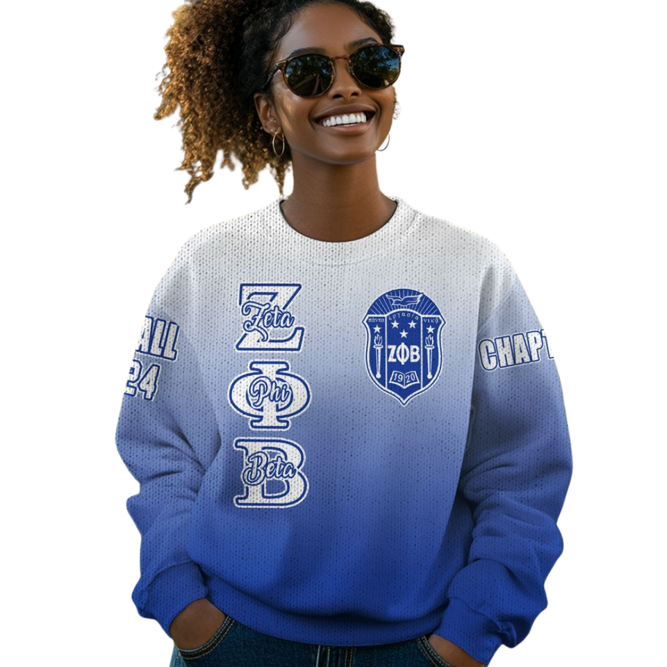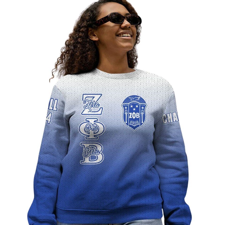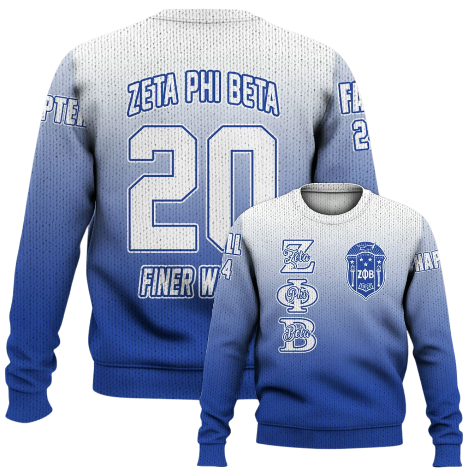 Zeta Phi Beta 1920 Knit Sorority Sweater ZPhiB Blue White Greek Life Chenille Patch Divine Nine Premium Sisterhood