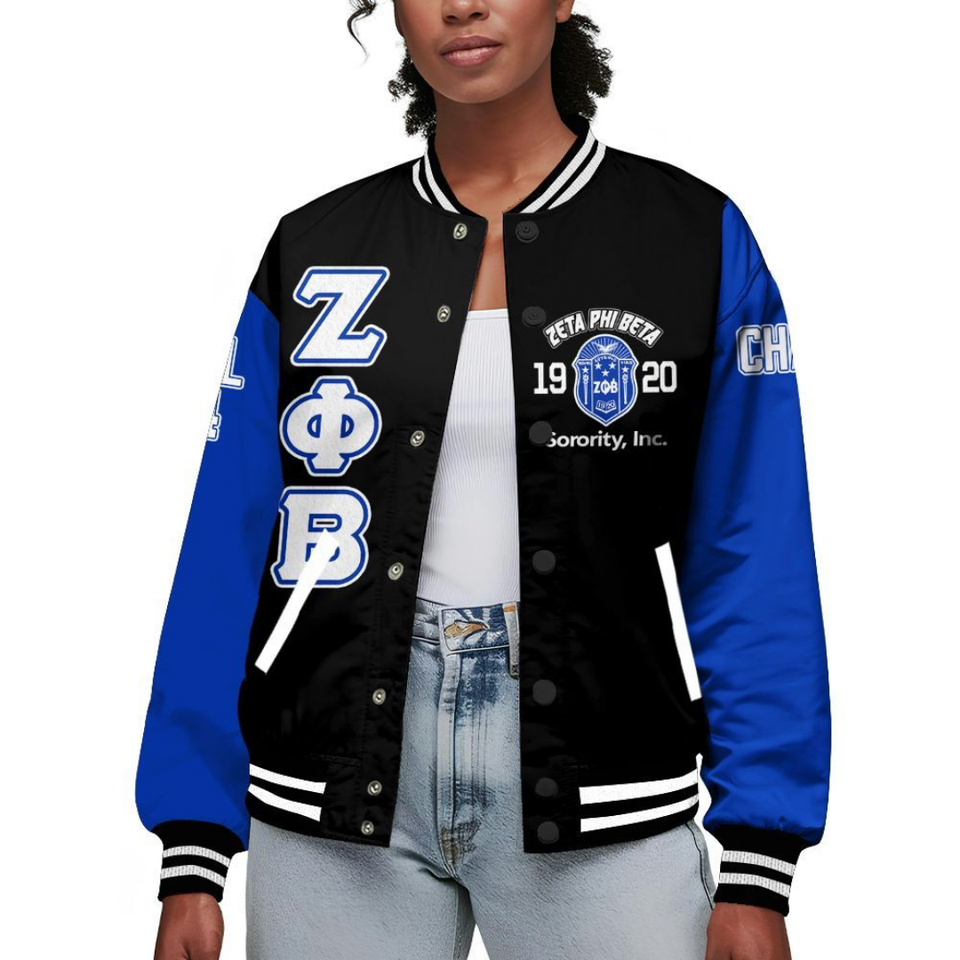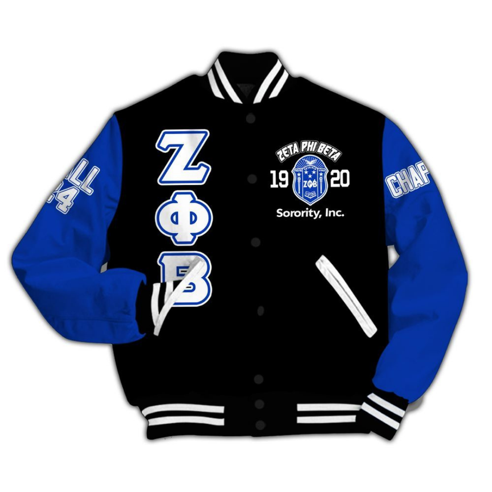 Zeta Phi Beta 1920 Letterman Jacket Blue White Sorority Varsity Chenille Patch ZPB Greek Life Founders Style Apparel